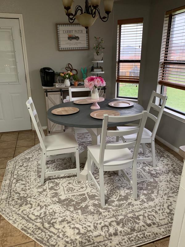 The rug under the dining table trend is something we are on board with! Marvelous farmhouse round dining room table set modern. Rug under kitchen table farmhouse kitchen tables modern farmhouse kitchens kitchen chairs farmhouse rugs kitchen wood kitchen decor dining introduce a charming round natural fiber rug into any cozy kitchen nook or under a petite dining table. I have a rug under my round kitchen table and i really like the look. So, youll need the size of your table plus at least an extra three feet so that people on all sides can get in. I really liked the look but. Special expandable round dining table strangetowne. Black and white strip rug. For help picking a rug with a. Optical illusion rug vortex rug, 3d round rugs vortex illusion rug durable anti slip floor mat house rugs non woven black white doormat for living dining room bedroom kitchen. Rug under round dining table antique nighthawk house decor. 2×3' handmade wool jute rug, handwoven rug, under coffee table, hallways rug, persian rug, killim, indian rug, skywayhandicrafts, indian. Dine in style with our industrial wharf dining table and saddle.
